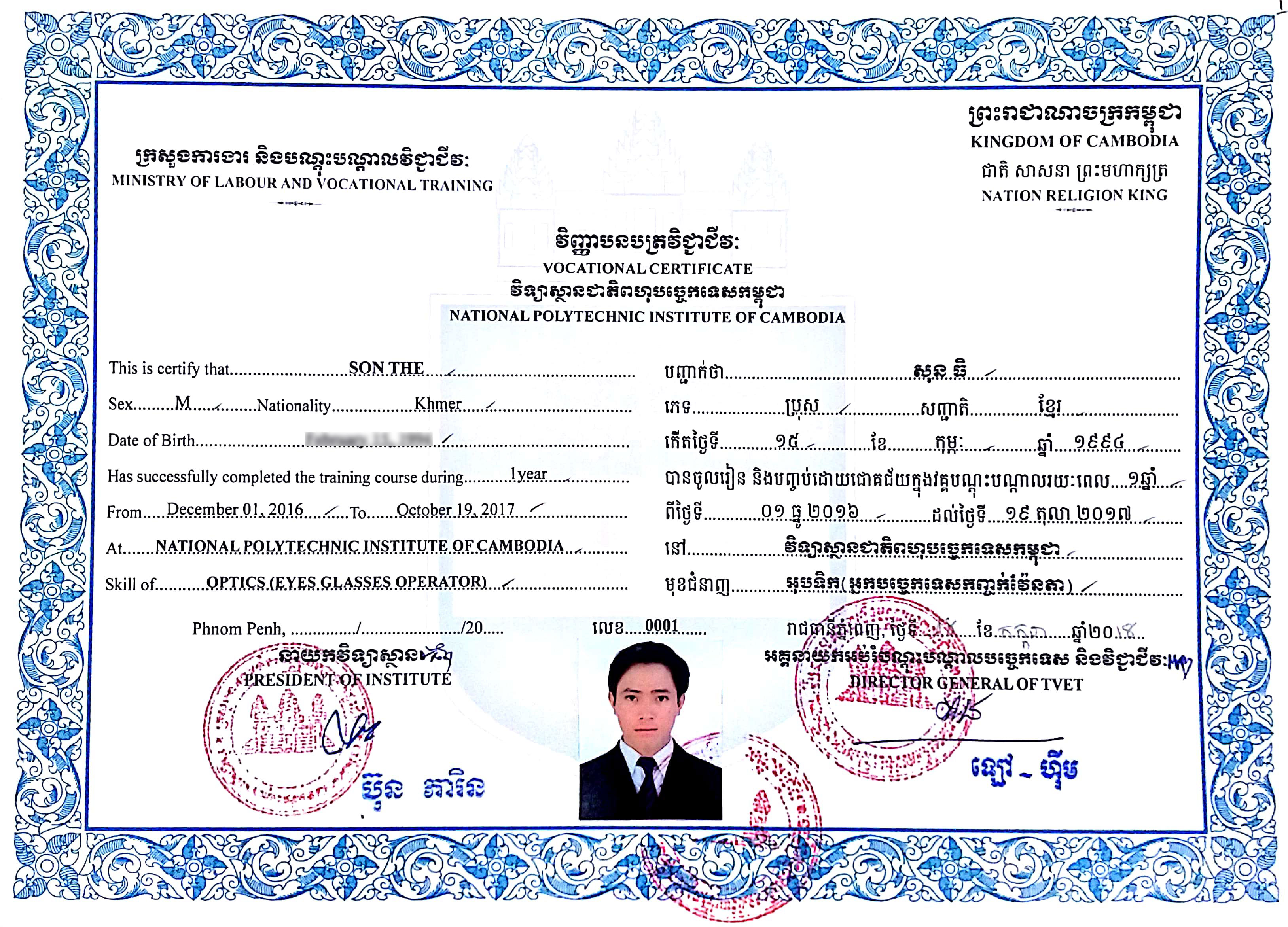 캄보디아 최초로 발급된 공인 안경사 자격증 이미지.jpg