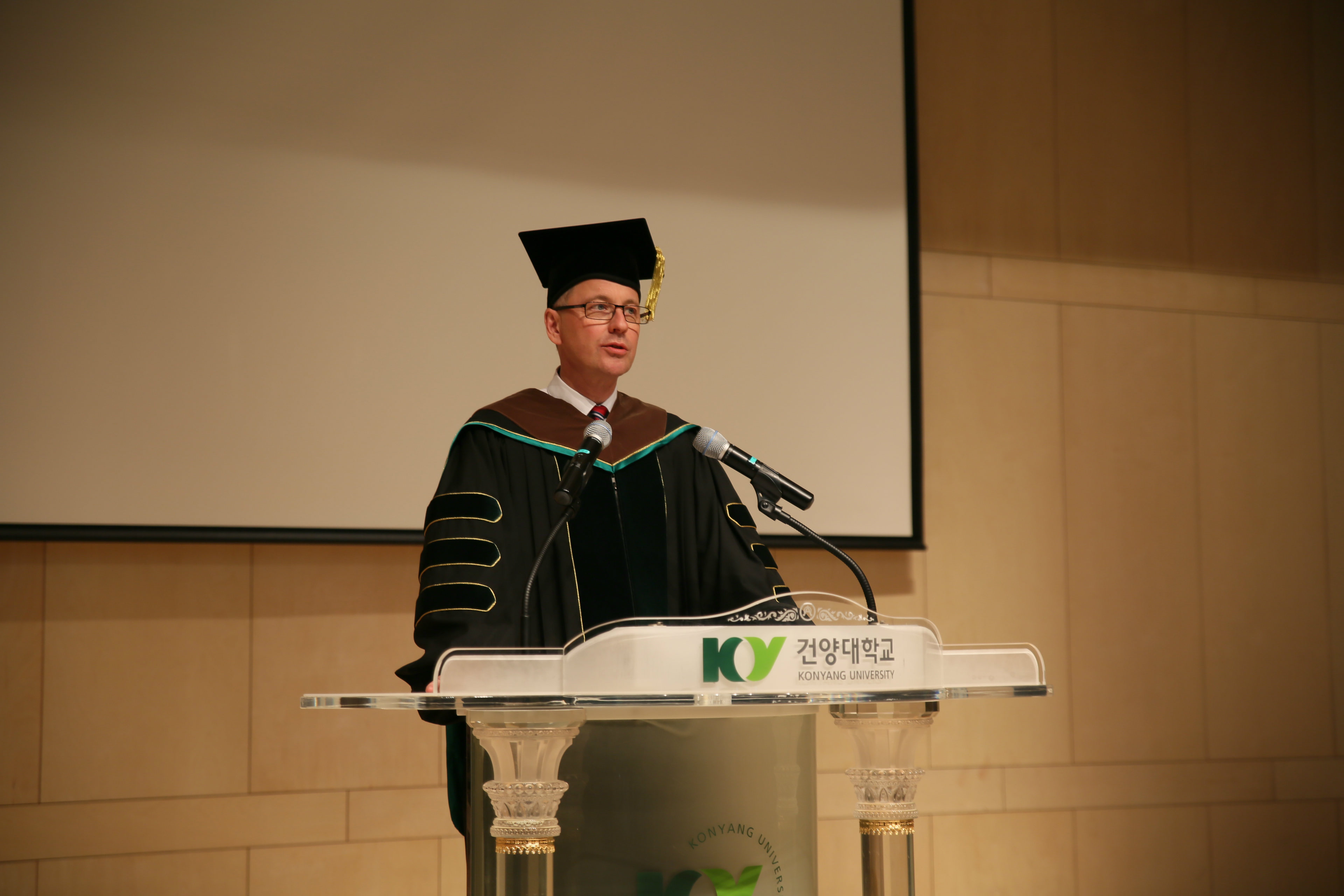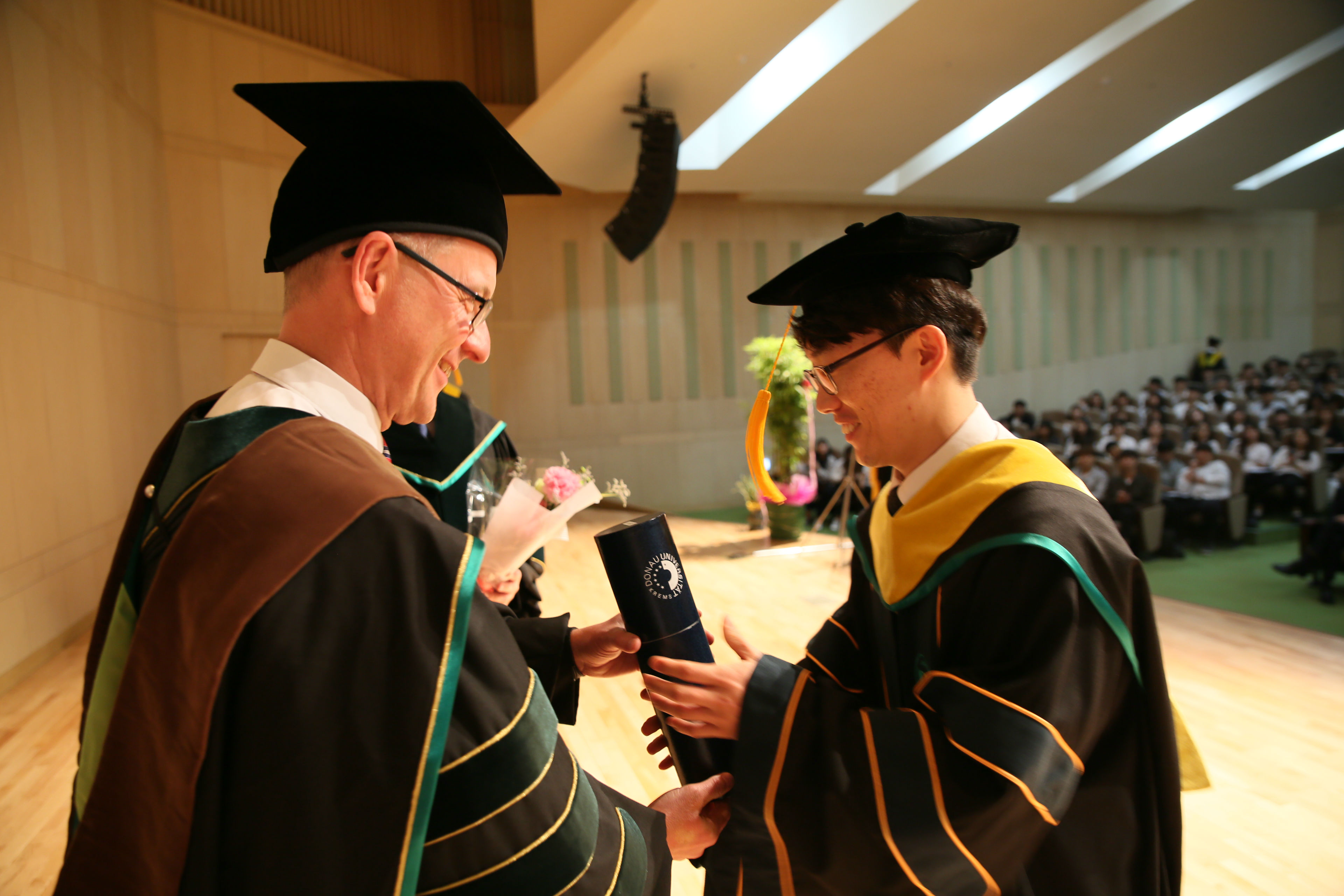 [사진설명] 사진 1. 다뉴브대 파울함머 총장이 졸업생에게 졸업증서를 전달하는 모습 사진 2. 다뉴브대 파울함머 총장이 졸업생들에게 축사를 하는 모습 사진 3. 기념식에 참석한 건양대 및 다뉴브대 관계자와 졸업생, 건양대병원 관계자들이 기념사진을 촬영하는 모습 |