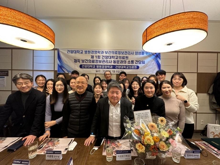 건양대(총장 김용하) 병원경영학과(학과장 김광환)가 9일 오후 7시 대전 베스타에서 ‘제1회 건양대학교의료원 재직 보건의료정보관리사 동문 소통 간담회’를 개최했다.