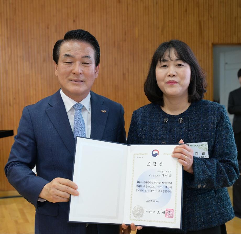 | 제목 | 논산발그래일터 허미란 실장, 보건복지부 장관 표창 수상 –발달장애인 직업재활 헌신 공로 인정- | ||||