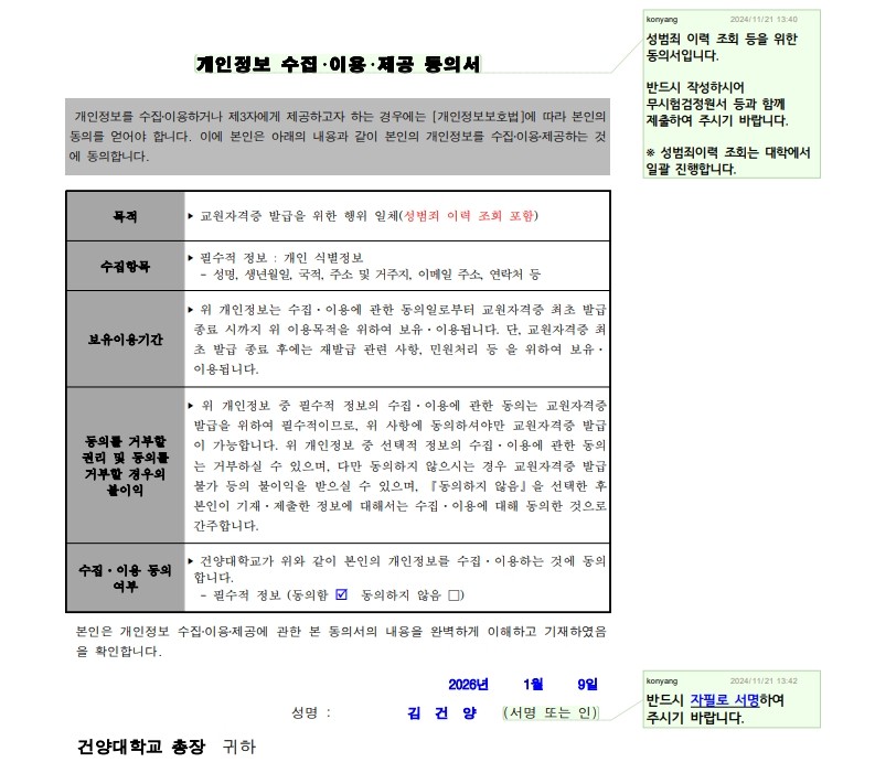 [붙임1] 교원자격 무시험검정원서(개인정보동의 포함).hwp